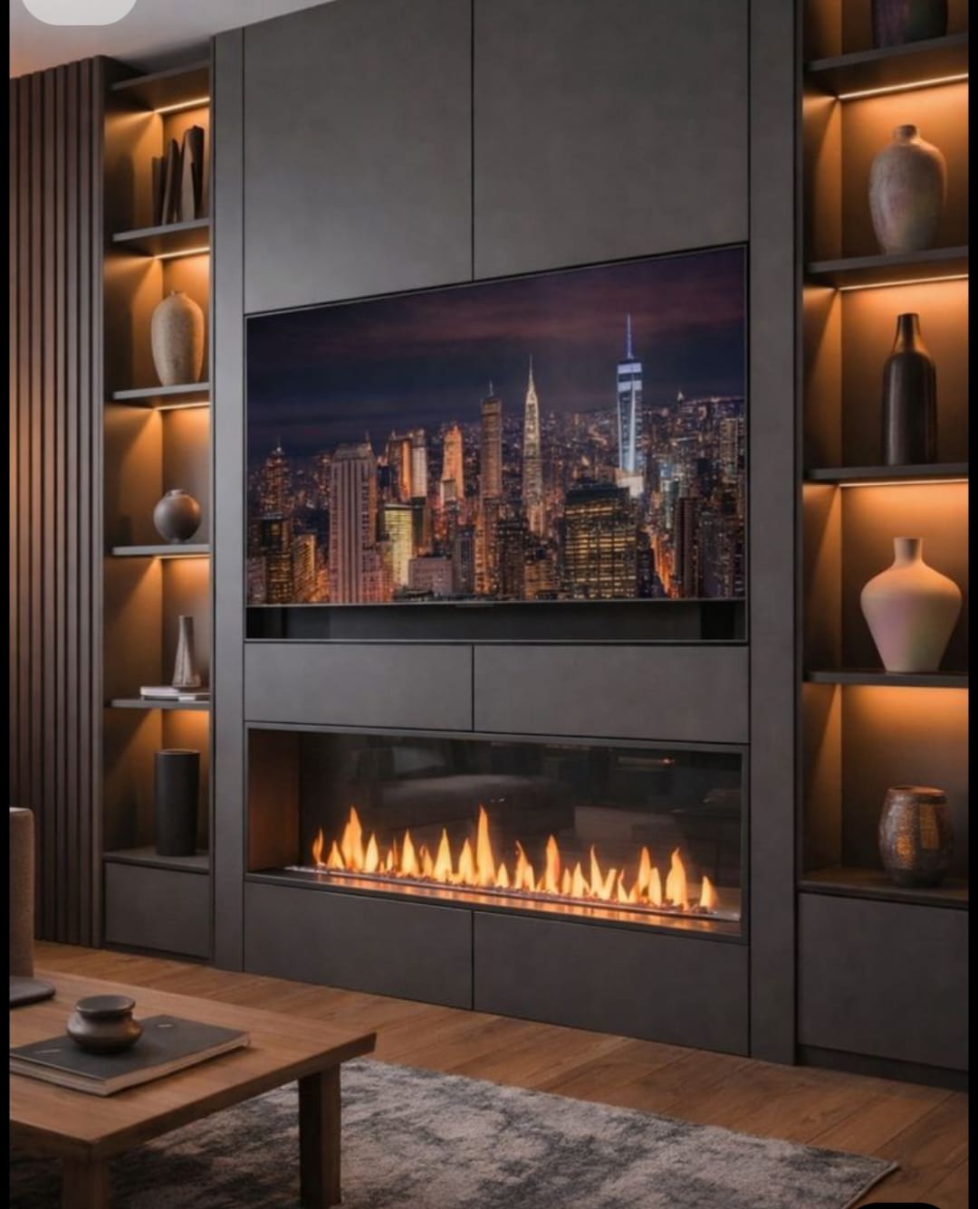 This gallery focuses on clean media walls with floating cabinet bases, hidden cable planning, balanced shelf placement, and minimal visual clutter.
