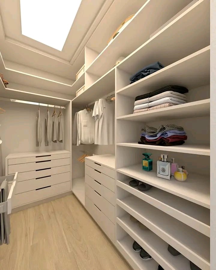 This walk-in closet gallery demonstrates layout-led storage: hanging zones, open shelving, shoe organization, and finish choices that keep the room bright, clean, and easy to use daily.